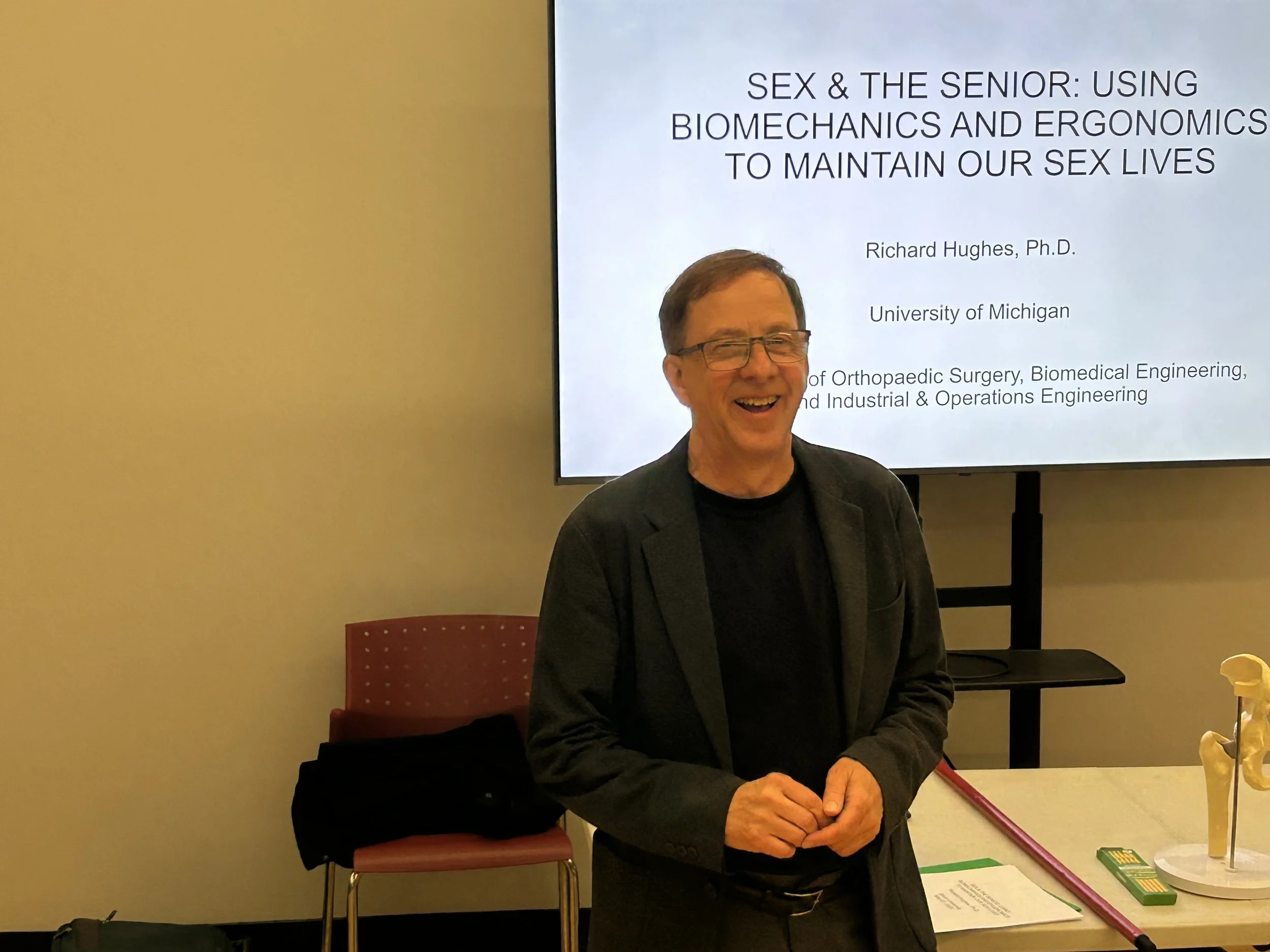 Richard Hughes, Ph.D., gives lectures on applying biomechanics and ergonomics to sex and aging. His lectures are aimed at non-academic audiences of older adults. To inquire about booking a lecture, go to the Contact tab or email Sex & Aging Biomechanics Lectures & Education.